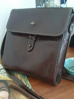 Så jag gick ner på Myrorna som ligger på samma gata och köpte denna skinnväska för 50 pix.