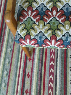 Tog en promenad med Lisa till en second hand-butik i Uppsala idag. (Helping Hand tror jag den hette) Det hade äntligen slutat regna och vi behövde gå bort några nybakade kakor. Hittade bara den här fina löparen. Den är dock 1.20 lång och jag vet inte riktigt var jag ska ha den.