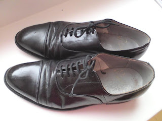 Här är mitt fynd från Myrorna som jag skrev om. Herrskor i Oxford-modell, upplyser min sko-tokige pojkvän mig om. Jag har letat efter ett par snygga herrskor ett tag men det är inte ofta man hittar några i stl 39.