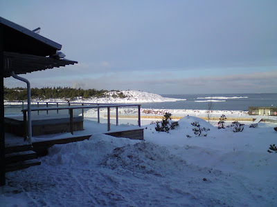 - Vi har badat bubbelpool utomhus (ni ser den till vänster i bild). 33 grader i vattnet - några minus i luften och fantastisk utsikt.
