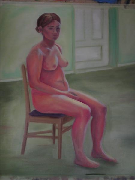 Idag har jag målat klart både självporträttet och den här modellmålningen. Den blev ganska grön. Nu är jag på väg till Sarah som bjuder på middag.