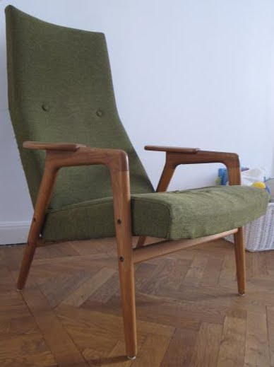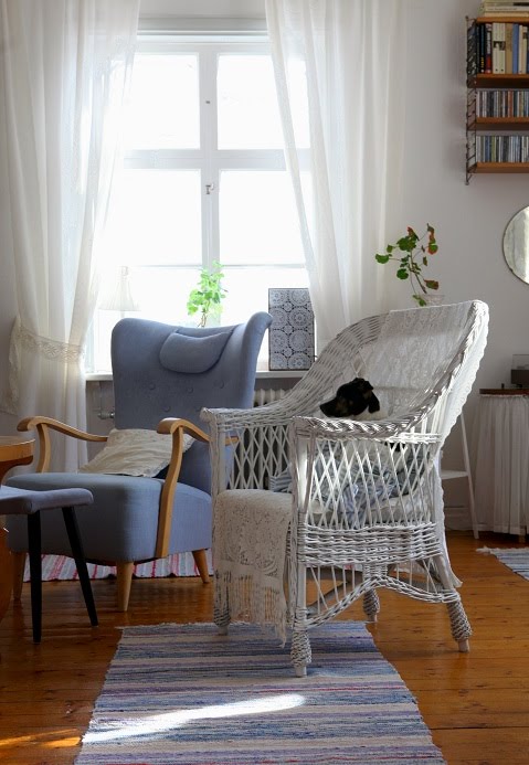 Jag läser bloggar och UnderbaraClara har fyndat en fin korgstol. Men kolla in bakom! Den blå fåtöljen är bland det finaste jag sett. En sån vill jag ha! DEN vill jag ha! Åh!