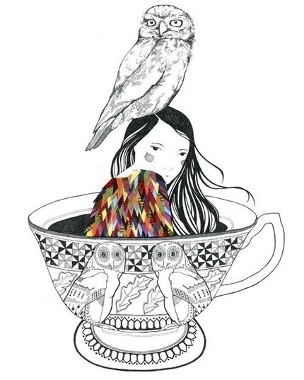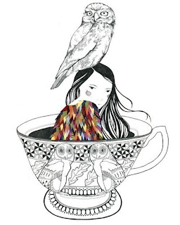 Bläck, kollage, akvarell, fåglar.. det här är min kopp te!!